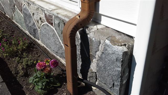 This downspout tied into the perimeter drains. Homes built after 1986 in the lower mainland typically use a 2-pipe system, however this was a single-pipe system.