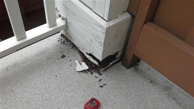 The rear balconies were in poor condition, particularly for a young building. There was extensive rot and deterioration of the balcony railings and trim, and in several units the actual deck posts were damaged – a safety concern.