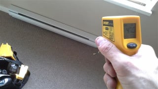 These units are typically heated with electric baseboard heaters. As part of our thorough Home Inspection, every baseboard heater is checked using an IR Thermometer. Electric baseboards provide reliable heat that rarely needs maintenance, which is perfect for a first-time home buyer.